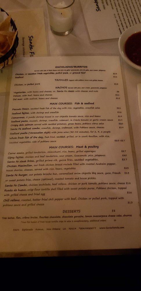 Welcome to Santa Fe, a vibrant gem nestled in the heart of New Orleans, where Latin American flavors dance on your palate. With a casual atmosphere perfect for groups and families, this restaurant offers a diverse menu that features traditional favorites alongside unique twists. Guests rave about creative options like the fried green tomatoes topped with succulent grilled shrimp and zesty remoulade sauce.